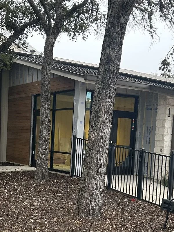 The pictures below show the inside and outside of the new entrance by the playground. All the glass brings much-needed light into the entrance. The wood walls on the outside compliment the new foyer.